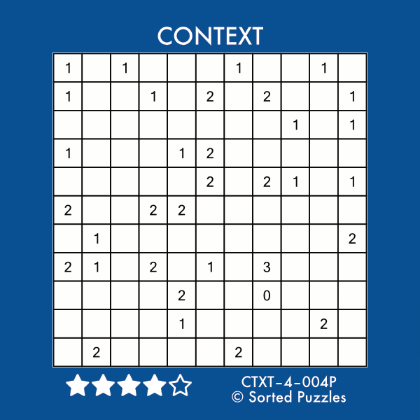 Context [CTXT-4-004P]Sorted PuzzlerOctober 10, 2025Shading/Pattern Puzzle (PDF) Solve Online Solution (PDF) Example Puzzle: Solution: Want more shading puzzles? Get the puzzle book! US, CA; UK, DE, FR, ES, IT, other Context Puzzle Archive Similar Puzzle Books Ready, Steady, Solve! Toroidal Snake US, CA; UK, DE, FR, ES, IT, other Toroidal Snake Puzzle Archive Ready, Steady, Solve! Chiyotsui US, CA; UK, DE, FR, ES, IT, other Chiyotsui Puzzle Archive Ready, Steady, Solve! Kurochute (Black Shot) US, CA; UK, DE, FR, ES, IT, other Kurochute Puzzle Archive Previous Post Miti [MITI-5-010P] Next Post Mid-Loop [MDLO-3-013P]