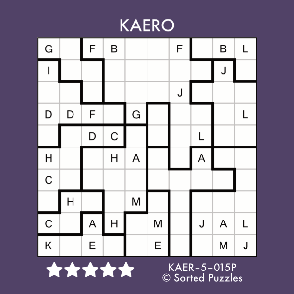 Kaero [KAER-5-015P]Sorted PuzzlerAugust 5, 2025Connection/Path/Moving Puzzle (PDF) Solve Online Solution (PDF) Example Puzzle: Solution: Want more Kaero puzzles? Get the puzzle book!US, CA; UK, DE, FR, ES, IT, other Kaero Puzzle Archive Similar Puzzle Books 1000 Path & Moving Logic Puzzles US, CA; UK, DE, FR, ES, IT, other More Info Puzzles on the Brain – Issue 4 US, CA; UK, DE, FR, ES, IT, NL, PL, SE; JP, AU July 2025 Path and Moving Logic Puzzles – Collection I US, CA; UK, DE, FR, ES, IT, other Puzzles in this book: Hidato, Kaero, Nurimaze, Rect-Slider, Number Chain Previous Post Nurikabe [NURI-3-013P] Next Post Center Dot Sudoku [CDSU-5-010P]