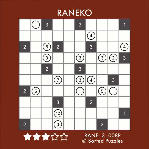 Raneko [RANE-3-008P]Sorted PuzzlerNovember 23, 2025Grid Division Puzzle (PDF) Solve Online Solution (PDF) Example Puzzle: Solution: Want more Raneko puzzles? Get the puzzle book!US, CA; UK, DE, FR, ES, IT, other Raneko Puzzle Archive Similar Puzzle Books Puzzles on the Brain – Issue 7 US, CA; UK, DE, FR, ES, IT, NL, PL, SE; JP, AU October 2025 Ready, Steady, Solve! Renkatsu US, CA; UK, DE, FR, ES, IT, other Renkatsu Puzzle Archive The Ultimate Puzzle Collection – Part IV, Book II US, CA; UK, DE, FR, ES, IT, other More Info Previous Post Tapa [TAPA-5-015P] Next Post Grades [GRAD-2-007P]